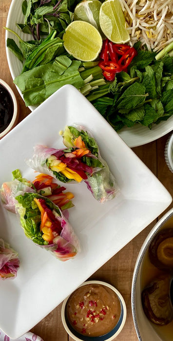 In this class, you'll learn to make a homemade stock that turns into a hearty Vegetarian Pho that's comforting, fresh, rich in soul-warming spices, with just a touch of spicy heat. Accompanying your Pho will be photo-worthy Rainbow Rolls, fresh rolls filled with a rainbow of colors, served with a homemade Peanut and Ginger Dipping Sauce.
